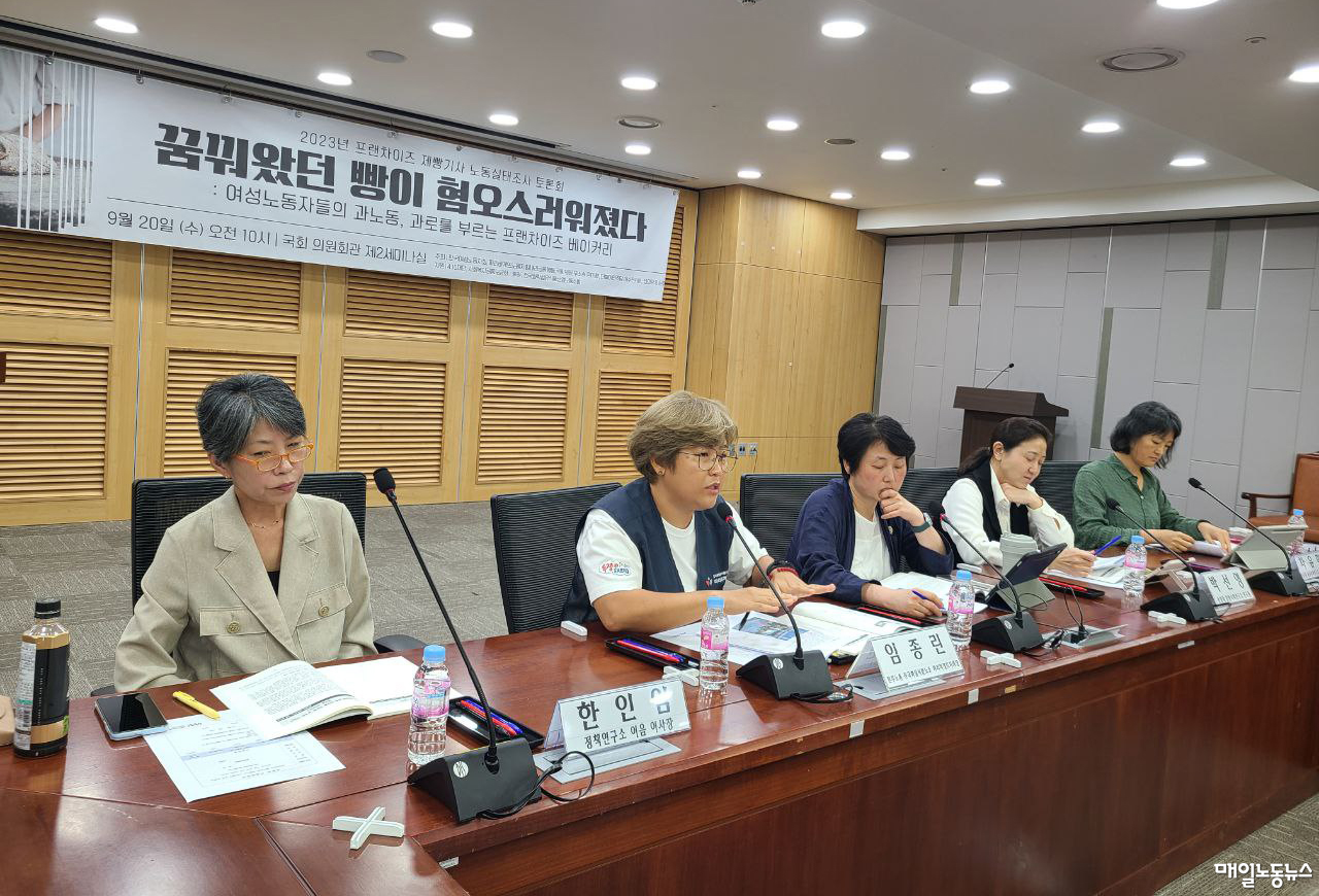 박선영 중앙대 중앙사회학연구소 연구원은 20일 오전 국회 의원회관에서 열린 ‘프랜차이즈 제빵기사 노동실태조사 토론회’에서 실태조사 결과를 발표했다. 박 연구원은 파리바게뜨 등 프랜차이즈 베이커리에서 일하는 1년~17년 차 제빵기사 20명을 인터뷰했다. 19명이 여성이고 1명은 남성이다.
