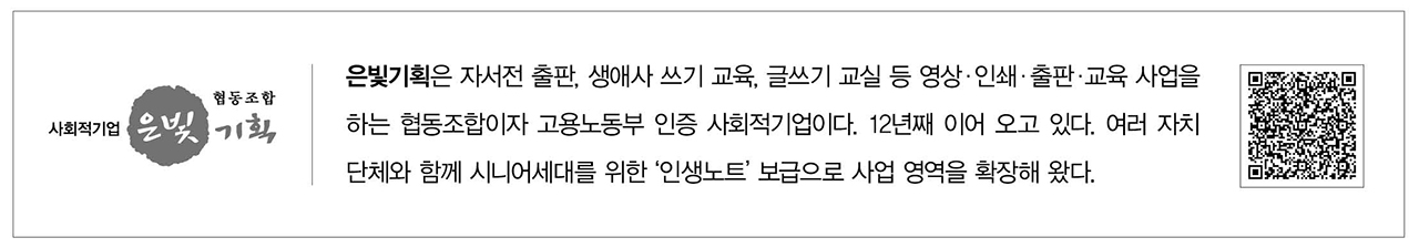 나의 일, 나의 일터, 내가 살아 온 날을 기록해 보자. 전문작가의 글처럼 수려하고 논리적일 필요는 없다. 나의 삶이 꼭 성공적이어야만 하는 것도 아니다. 나의 삶을 기록하는 자체로 새로운 세계가 열린다. 사회적기업인 협동조합 은빛기획이 노동자들과 퇴직예정자들에게 글쓰기, 자서전 쓰기를 제안한다. <편집자>