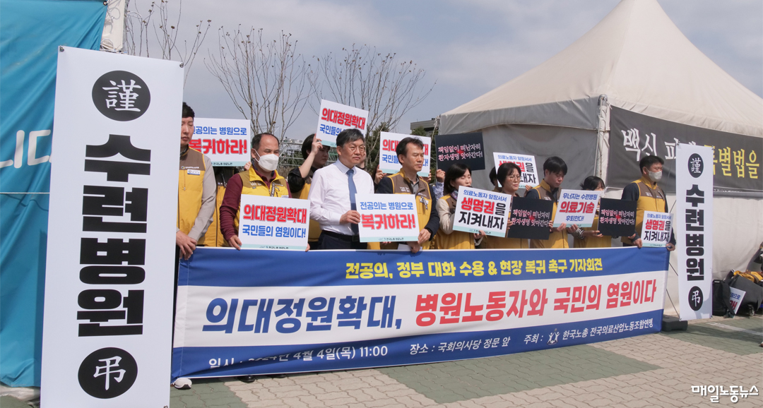 병원노동자들은 전공의들의 조속한 현장 복귀를 촉구했다. 의료노련은 “전공의들이 조건 없는, 즉각적인 현장 복귀를 촉구한다”며 “연맹은 국민과 의사단체의 협의체에 적극 동참해 합리적인 사회적 협의를 위해 함께할 것”이라고 밝혔다. 보건의료노조도 “지금 즉시 의사와 정부 모두 올바른 의료개혁과 의료체제를 세우기 위해 모든 노력을 다하라”며 “의사는 지금 즉시 복귀해 환자의 절망을 멈춰야 한다”고 요구했다.