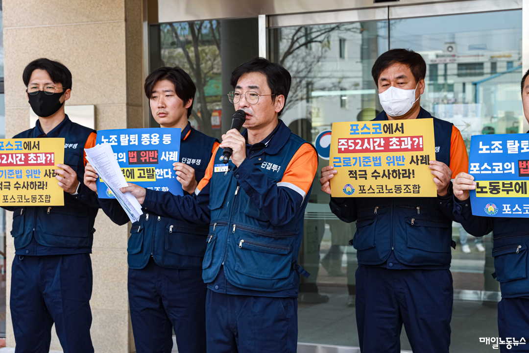 포스코노조(위원장 김성호)는 고용노동부 포항지청에 사측을 노동조합 및 노동관계조정법(노조법)·근로기준법 위반 등으로 고발장을 접수했다고 8일 밝혔다. 노조는 지난달 초부터 조합원을 대상으로 각종 위법행위 사례를 제보받은 결과 사측이 노조 탈퇴를 종용하는 등 부당노동행위를 하고 근로시간 초과, 휴게시간 미준수 등 근로기준법을 위반한 의혹이 적발됐다고 주장했다. 노조가 공개한 내용 중에는 “부공장장, 파트장이 탈퇴서를 들고 다니며 직원들에게 서명하라고 한다” “튀는 행동 하지 말고 불이익받고 싶지 않으면 빨리 탈퇴하라고 협박한다” 같은 사례가 접수됐다.