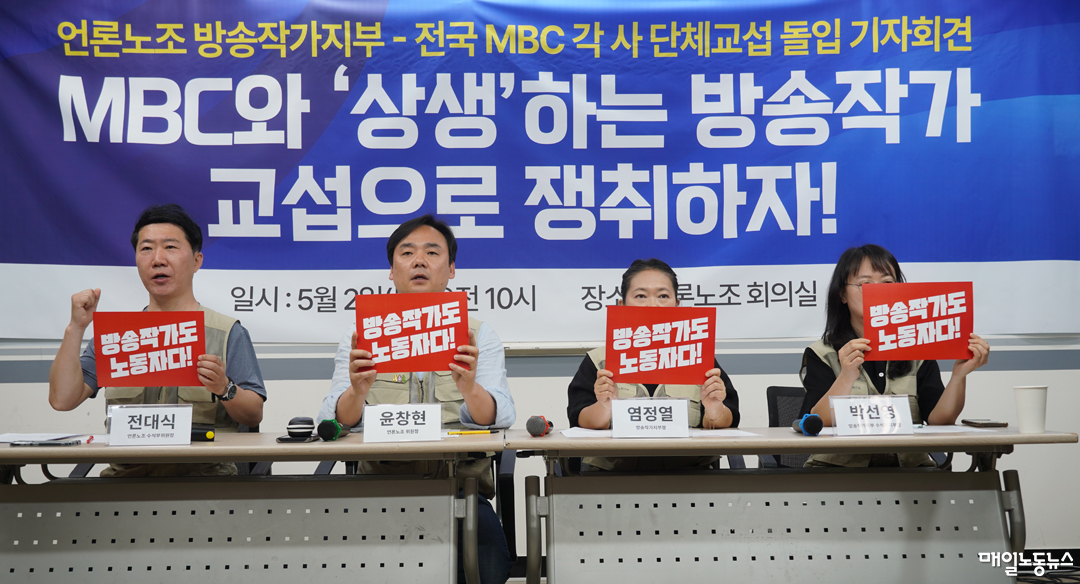 방송작가지부는 2일 오전 서울 중구 언론노조 사무실에서 기자회견을 열고 3일 춘천MBC를 시작으로 상견례를 하고 원고료 인상을 비롯한 단체협상을 이어 나간다고 밝혔다. 지부는 서울 본사 제외 지역 16개 계열사 중 12곳과 교섭 일정을 확정하거나 논의 중이라고 설명했다. 대구·경남·광주 MBC의 경우 교섭 요구에 대한 확답을 받지 못한 상태다.