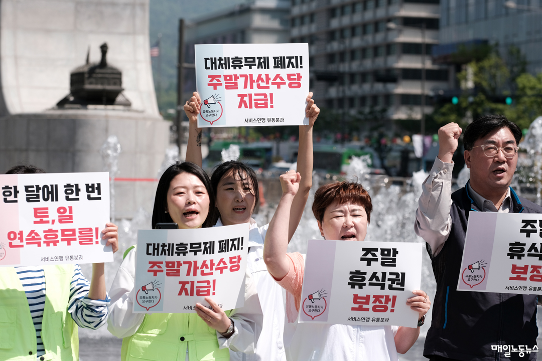이동호 유통산업노조 위원장은 “온라인 배송을 무제한 허용하면 유통분야 노동자 다수가 주말과 심야에 일해야 한다”며 “대형마트 의무휴업 사수 등 소극적인 휴식권 보장 요구에서 그치지 않고 주말 휴식의 현실화를 위한 입법 투쟁을 준비하겠다”고 말했다.