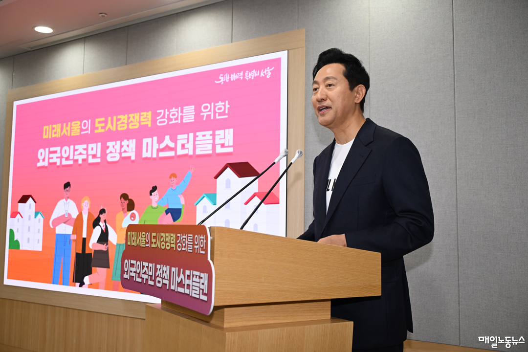 오세훈 서울시장은 20일 오전 서울 중구 서울시청에서 “외국인주민과 함께 성장하는 글로벌도시 서울을 만들겠다”며 이런 내용을 담은 ‘외국인주민 정책 마스터플랜(2024~2028년)’을 발표했다.