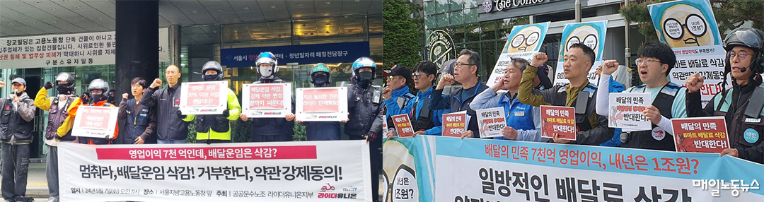 라이더유니온지부는 24일 오후 서울 송파구 배달의민족 본사 앞을 행진하며 배달의민족 콜을 거부하는 항의행동을 진행할 계획이다. 지부는 “행사에는 라이더 200명이 참여할 것으로 예상되며 최근 무료배달 경쟁으로 수수료 인상 고통을 겪은 자영업자들도 참여할 예정”이라고 밝혔다.