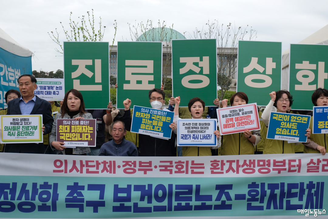 노조는 “의대 증원이 확정되자 촛불집회를 열어 한국 의료 사망을 선고하고 6월부터 더 큰 싸움을 시작하겠다고 예고한 의협의 태도는 이러한 국민 여론에 정면으로 역행한다”며 “의사단체들은 더 이상 의대 증원 백지화를 내세워 의료개혁을 위한 대화를 거부하지 말고, 대화에 참여하라는 국민의 뜻에 따라야 한다”고 촉구했다.