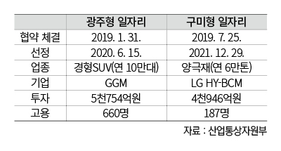 노사상생을 기치로 내걸고 출범한 상생형 지역일자리 곳곳에서 파열음이 커지고 있다. 1호 상생형 지역일자리 광주글로벌모터스(GGM)에서는 ‘저임금 무권리 일자리’라는 노동자 불만이 제기되며 올해 연이어 노조가 결성된 뒤 금속노조에 가입했다. 구미형 일자리 LG-HY BCM에서는 지난해 공장 준공 이후 노조가 곧바로 설립됐다. 안정적 노사관계 정착을 위한 노사민정협의회·갈등조정위원회 같은 기구가 제 역할을 하지 못하면서 균열이 생기고 있다는 지적이다.