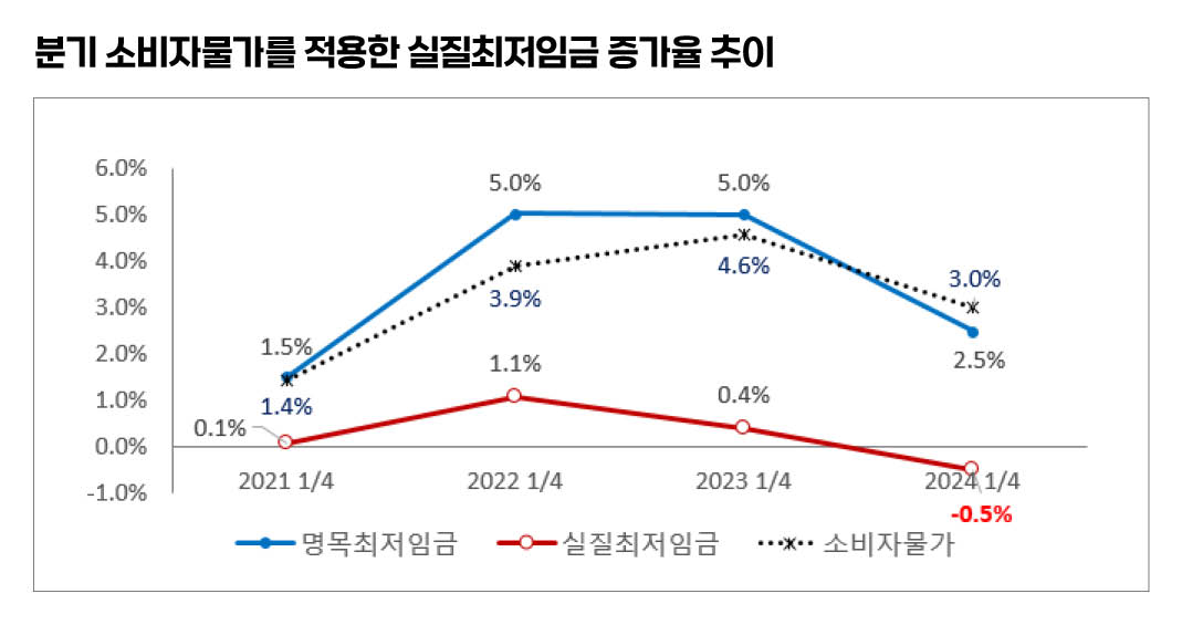 실질최저임금 1분기 기준 첫 마이너스 기록
