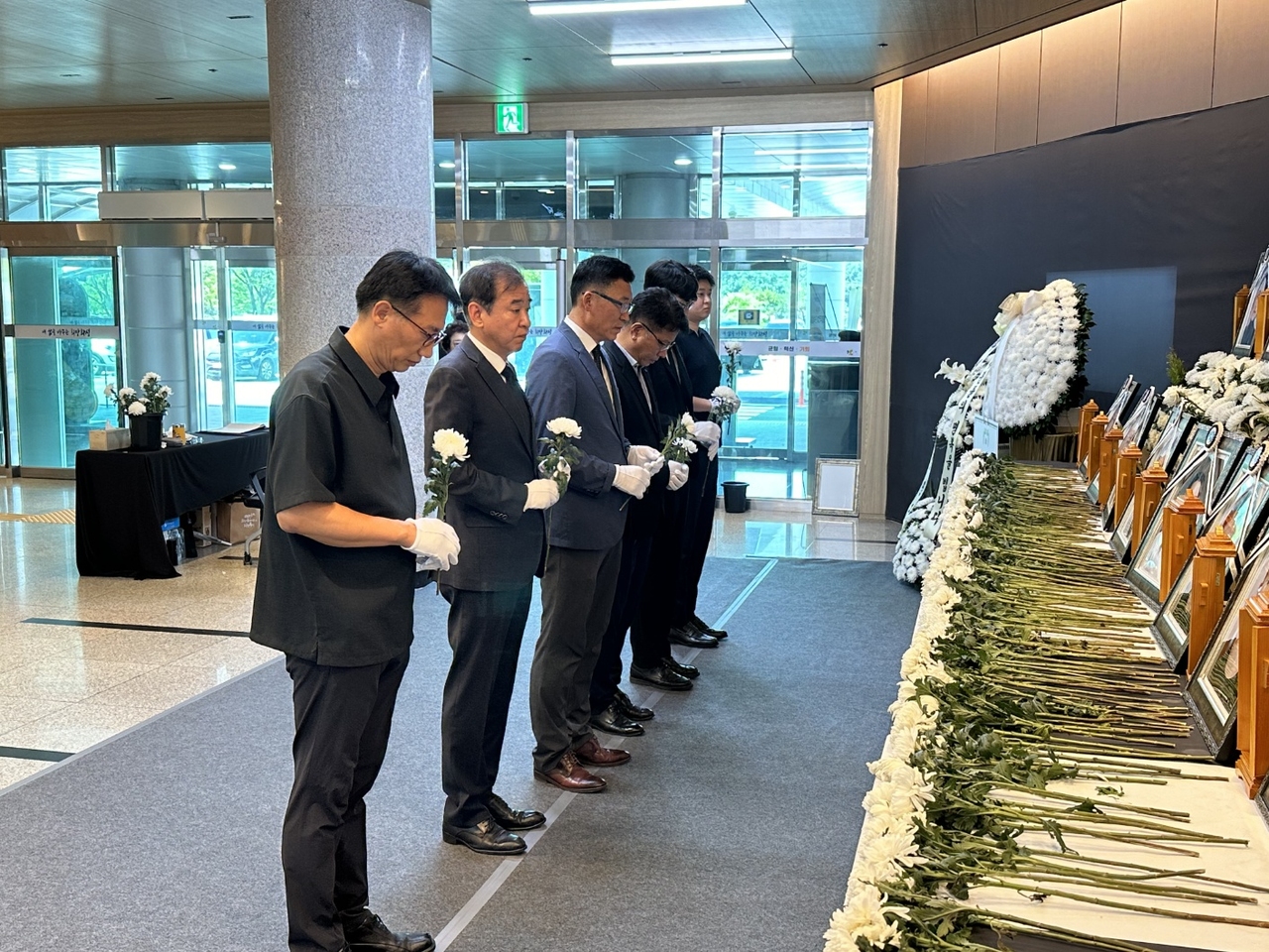 경기도 노사민정협의회 산업안전특별위원회(위원장 한기운)는 10일 오전 경기도 화성시청에 마련된 화성 아리셀 전지공장 화재 사고 추모분향소를 찾아 조문했다.