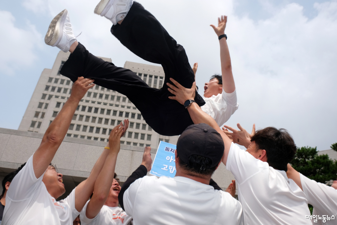 짧은 선고를 들은 탁선호 변호사(법무법인 여는)가 두 주먹을 움켜줬다. 찰나의 조용한 환희가 재판정을 휩쓸었다. 맨 앞줄에 앉은 차헌호 금속노조 아사히글라스비정규직지회장의 표정은 볼 수 없었다. 법정경비가 소란을 제지했다. 무미건조한 대법관의 목소리가 이어졌다.