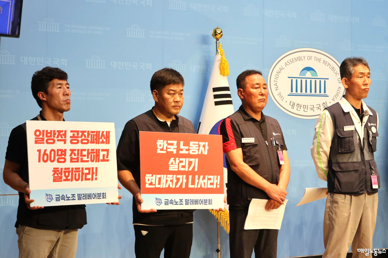 금속노조와 정혜경 진보당 의원은 16일 오후 국회 소통관에서 기자회견을 열고 “현대차는 국내 자동차 부품산업 발전에 도의적인 책임을 다하라”며 “국회는 외투기업의 횡포를 막을 방안을 마련하라”고 밝혔다.