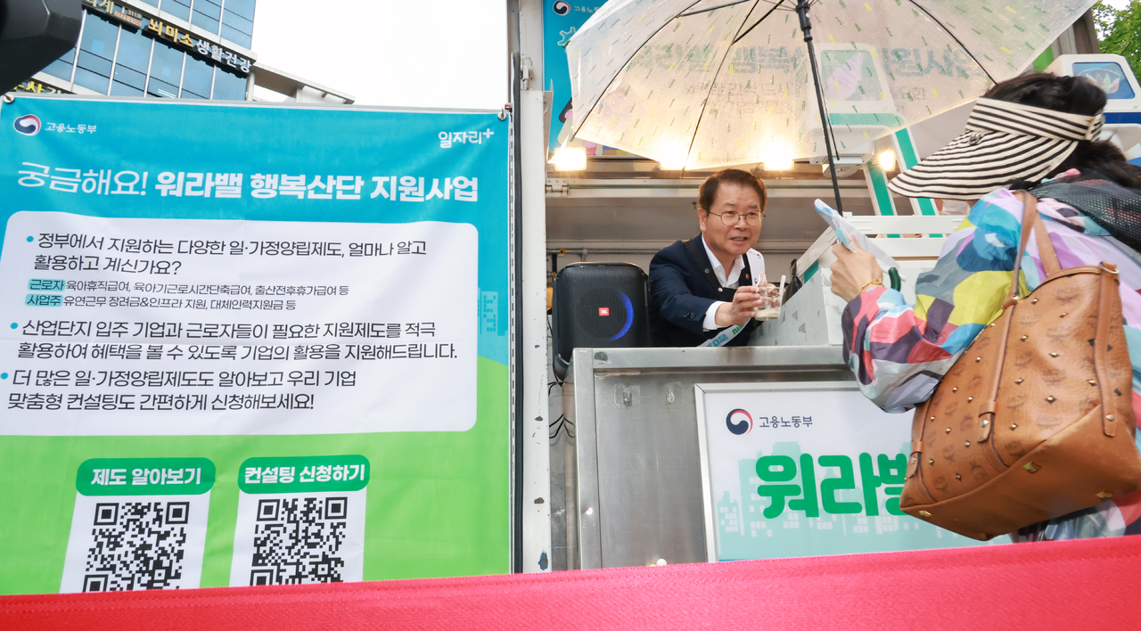 이정식 노동부 장관은 23일 오후 서울디지털산업단지에서 열린 ‘워라밸 행복산단 지원사업’ 발대식에서 “산업단지가 중소기업 일‧가정 양립 확산의 핵심 거점이 될 수 있도록 고용센터‧자치단체‧산업단지공단 등 유관기관의 역량을 집중하겠다”고 밝혔다.