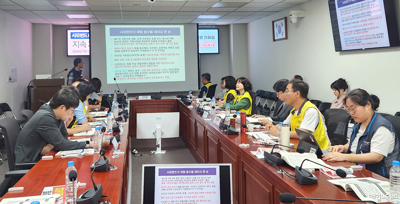 김성혁 민주노동연구원 원장도 “사모펀드는 인수한 기업을 보유 현금이나 자산을 빼먹고 약탈하는 대상으로 간주한다”며 “탈 많은 사모펀드를 규제해야 하는데 현재의 법체계로 가면 상당히 어렵다. 문제가 있을 때마다 공론화하며 구체적인 입법을 추진할 필요가 있다”고 말했다.