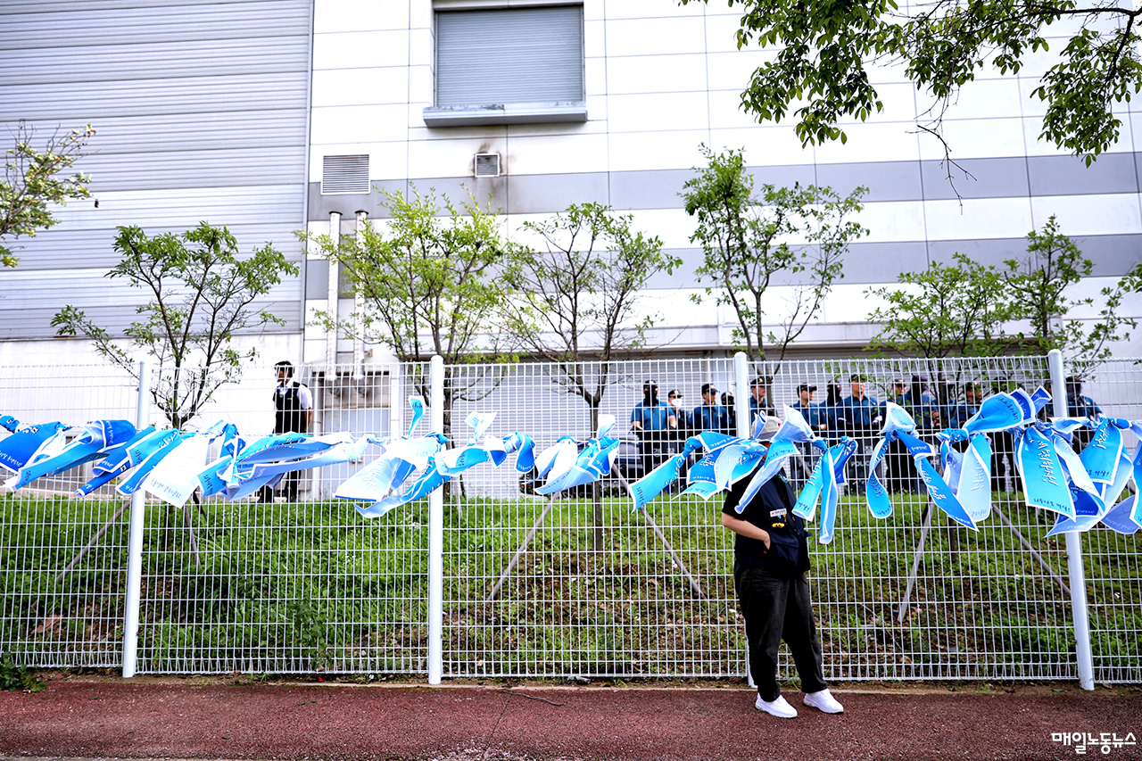 두고 온 세계는 여전히 아름답다. 눈 감으면 우리 회사 가는 길이다. 이름을 적어 둔 내 실내화, 손 안에 잡히는 고됨과 자부. 짧은 휴식에 모이고 흩어지던 웃음들. 저녁 어스름 속 우리 집 불빛, 나를 부르는 사랑하는 것들. 그러나 눈 뜨면 아직 옥상 한가운데다. 불탄 공장 위로 내리는 더위에 몸이 젖는다. 한국옵티칼 구미공장 옥상에서 고용승계를 외치는 두 사람의 고공농성이 지난 24일 200일을 맞았다. 사측은 교섭 대신 신규 공장 앞에 출입 통제 문구와 이중문을 달았다. 경찰과 경비직원들을 벽처럼 세워 놓았다. 그런 농성이 무슨 소용이냐 하는 것처럼. 억울한들 이리된 걸 어떡하냐 하는 것처럼. 그래도 사람이란 버린다고 그냥 버려지는 게 아니라서, 두고 온 것은 잃어버린 것은 아니기도 해서. 곳곳에서 모여든 사람들은 공장 앞에 하늘색 끈을 길게 이어 달았다. 옥상 위 제 몸을 버려 언어가 된 사람들이 다시 말한다. 우리, 여기, 있어. 우리, 의 세계,는 여전히 아름답,고.