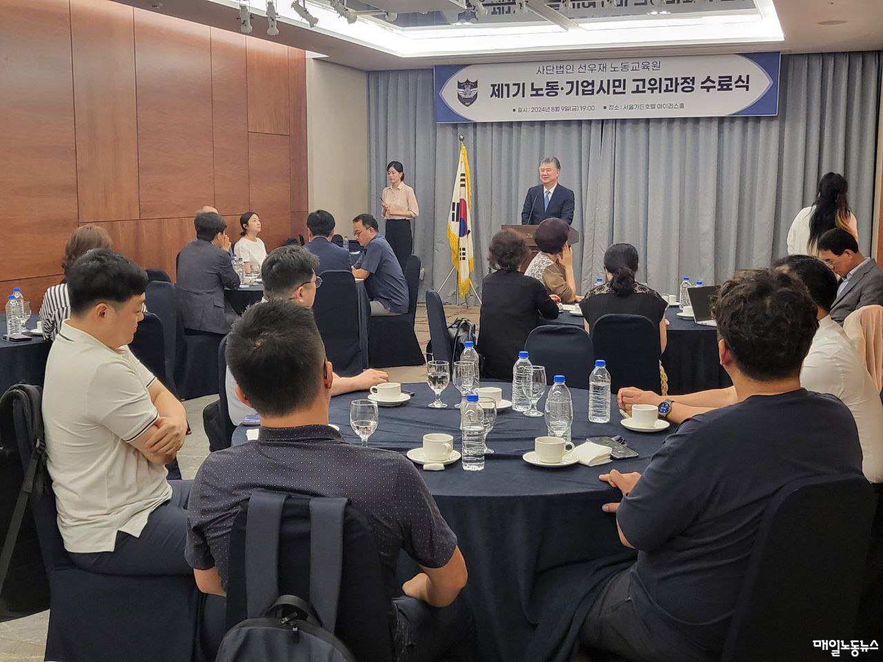 선우재 노동교육원이 지난 9일 오후 서울 마포구 가든호텔에서 1기 노동·기업시민 고위과정 수료식을 가지고 6개월 과정을 마쳤다.