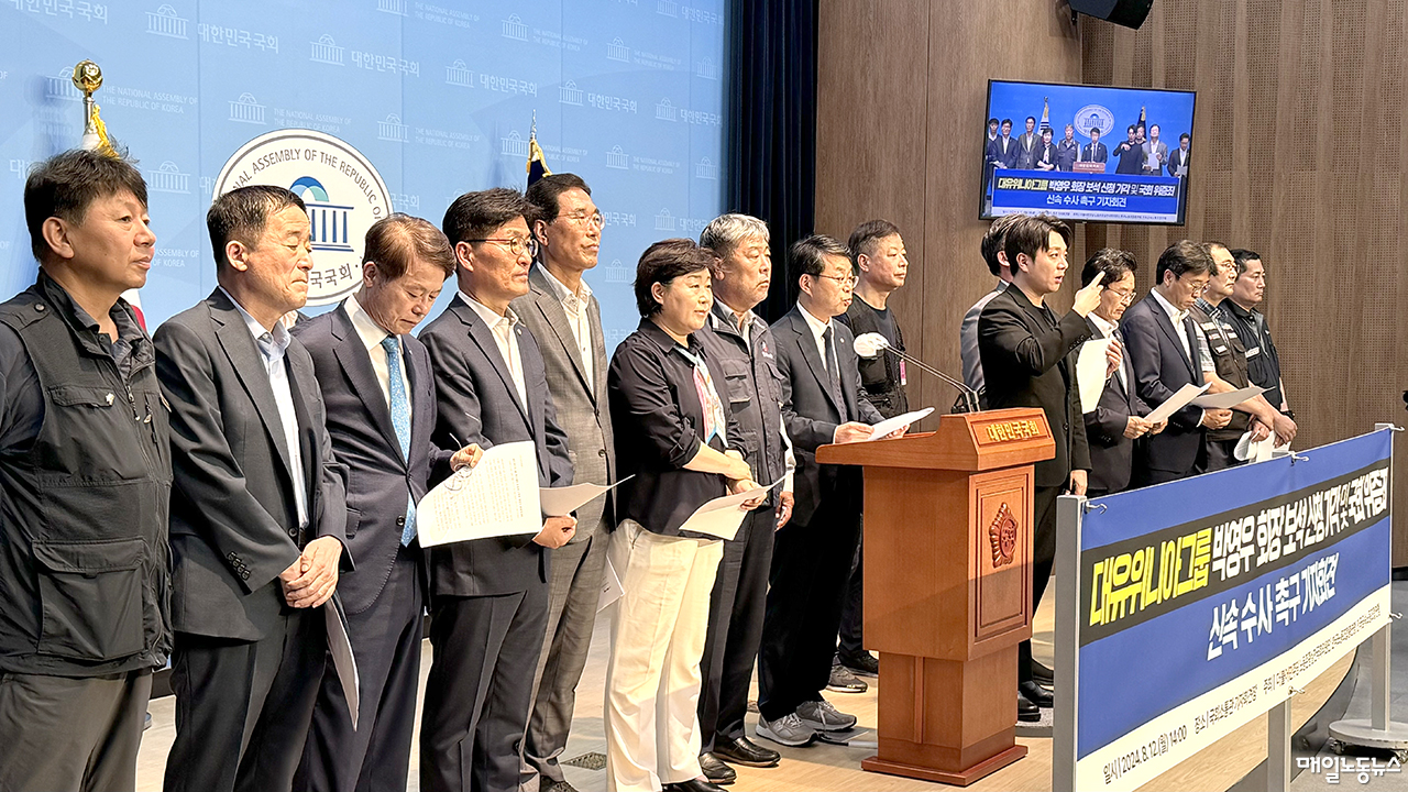 한국노총(위원장 김동명)과 금속노련(위원장 김준영), 더불어민주당 노동존중실천단은 12일 오후 국회 소통관에서 기자회견을 열고 “대유위니아그룹 가전3사 임금체불 피해노동자 2천여명의 임금체불액은 무려 1천억원”이라며 “박영우 회장은 재판부에 구체적인 변제계획서도 제출하지 않은 채 오히려 구속상태여서 임금체불 문제를 해결하기 어렵다며 보석을 신청했다”고 지적했다. 이어 “상습적이고 고의적인 체불사업주로 노동자의 생존권을 파괴한 박영우 회장의 보석 신청은 반드시 기각돼야 한다”며 “국회 위증죄 고발에 대한 검찰의 신속한 수사와 법원의 엄벌도 촉구한다”고 밝혔다.