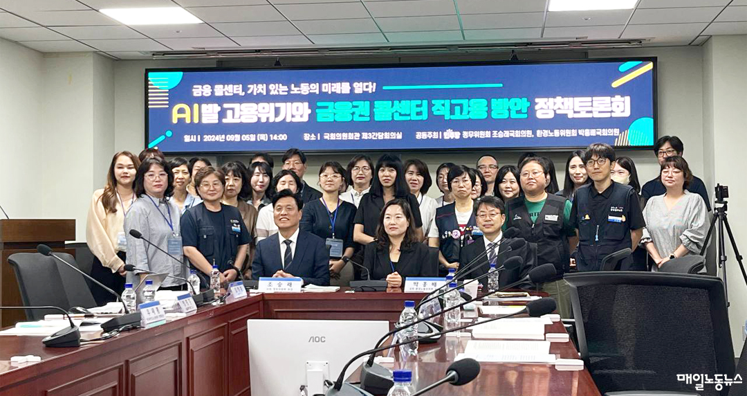 공공운수노조 든든한콜센터지부와 조승래·박홍배 더불어민주당 의원은 5일 오후 국회 의원회관에서 ‘AI발 고용위기와 금융권 콜센터 직고용 방안’ 토론회를 열었다.