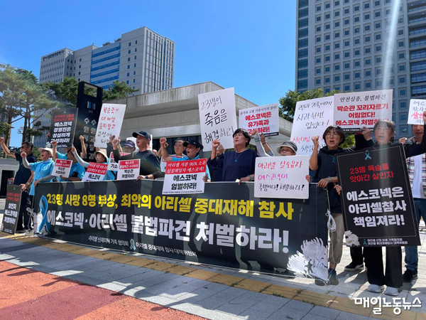 유족과 노동계는 교섭 이행을 촉구했다. 아리셀 산재 피해 가족협의회와 아리셀 중대재해 참사 대책위원회는 이날 성명을 내고 “박 대표는 희생자 가족과 교섭을 회피하며 에스코넥으로 책임이 확대되는 것을 필사적으로 방해하고 있다”며 “검찰은 여전히 자기 살길만 도모하는 박 대표가 저지른 죄에 합당한 죗값을 치를 수 있도록 하라”고 요구했다. 민주노총도 “회사는 유족들에게 사과하고 교섭에 즉각 나서라”고 강조했다. 또 검찰에 에스코넥의 중대재해처벌법 위반 여부를 수사하라고 요구했다.