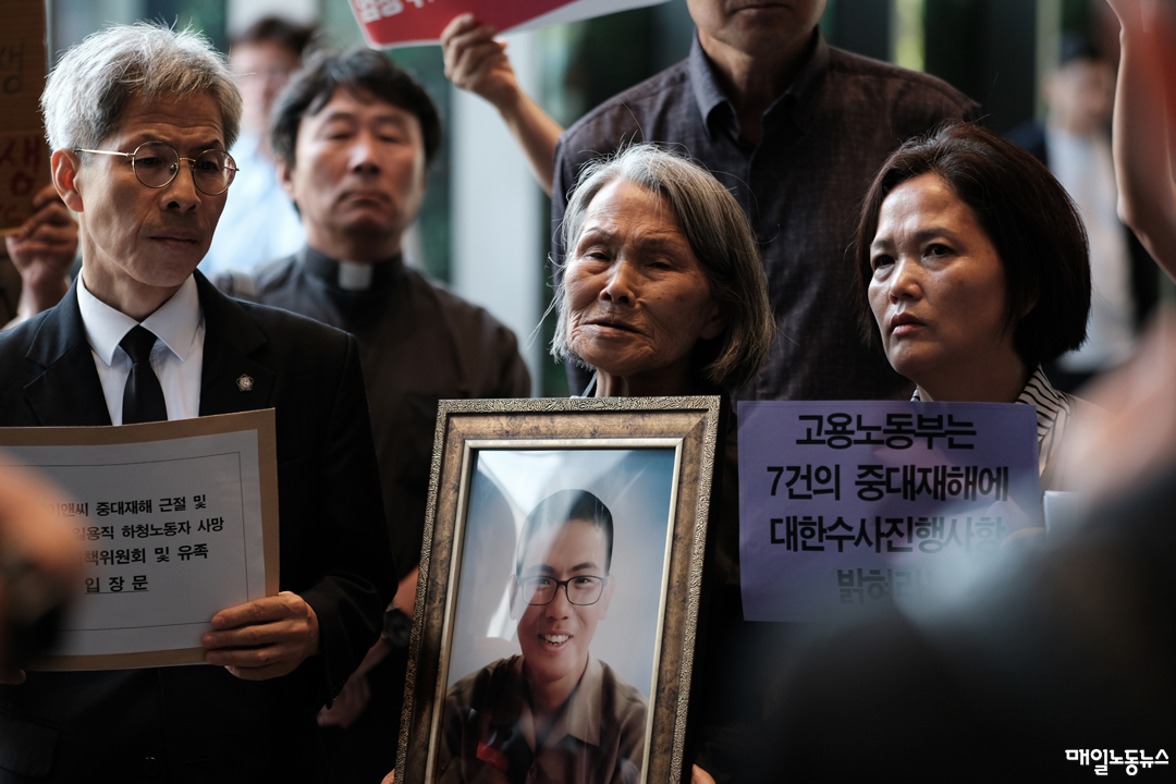 그룹측 해명도 없었다. 지선씨는 “지난해 11월 합의 이후 그룹이 건넨 ‘사고조사보고서’를 보니 노동자에게 작업거부권을 줬다는 취지의 내용이 많았다”며 “일당을 벌기 위해 죽음에 내몰린 노동자가 거부권을 행사할 수 있었단 말이냐. 책임 회피에 불과하다”고 목소리를 높였다. 유족은 지난달 7일 대검찰청에 기소촉구 의견서를 냈다.