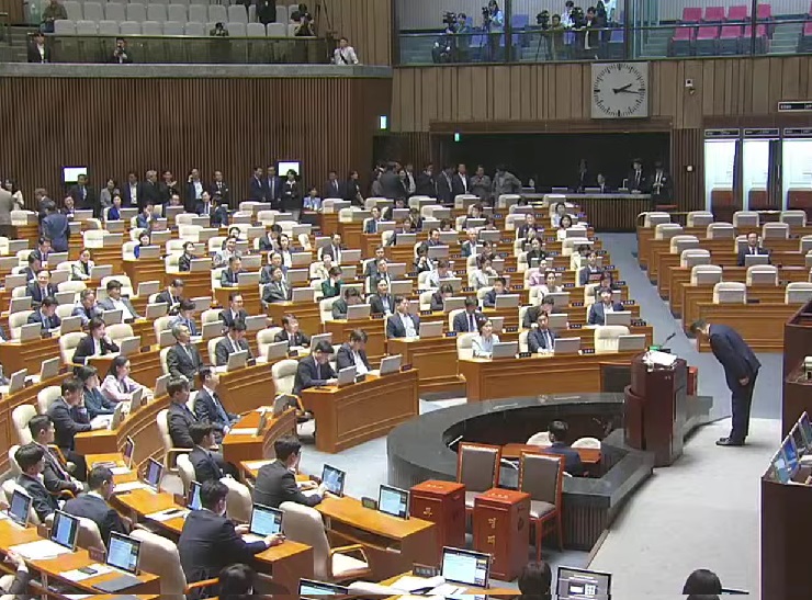 다만 국민의힘에서 찬성 4표가 이탈한 것으로 관측된다. 국민의힘 의원은 총 108명인데 김건희·채 상병 특검법에 104명이 찬성했기 때문이다. 국민의힘은 재표결을 앞두고 국회에서 의원총회를 열어 3개 법안 부결을 당론으로 결정했다. 한동훈 국민의힘 대표는 “민주당 특검법안은 민주당 마음대로 (특검을) 골라서 전횡할 수 있는 내용”이라며 “이런 법이 통과되면 사법 시스템이 무너진다. 반드시 막아야 한다”고 주장했다.