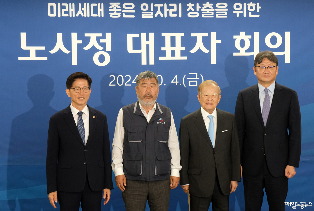 지난 4일 대표자 회의에는 김동명 한국노총 위원장, 손경식 한국경총 회장, 김문수 노동부 장관, 권기섭 경사노위 위원장이 함께했다. 노사정 대표자 회의는 사회적 대화 복원을 위해 지난해 12월14일 열린 비공개 회의 이후 약 10개월 만이다. 김 장관과 권 위원장이 지난달 취임한 후 노사정이 한자리에 모인 것은 이날이 처음이다.