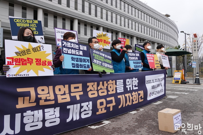 전교조와 교사노조연맹은 보도 이후 지난 8일 나란히 성명서를 발표했다. 전교조는 “교사의 과중한 업무 부담을 공무상 재해로 인정한 이번 판결을 환영한다”며 “교육부는 위법한 교사 행정업무 부과를 즉시 중단하라”고 촉구했다. 전교조는는 초·중등교육법상 교사의 업무 본질은 교육이기 때문에 행정업무로 교사의 업무가 방해를 받는 것은 위법하다고 주장했다. 전교조는 정보공개를 통해 교육부가 노조 주장과 관련해 5개 로펌에 법률검토 의견을 구한 결과를 받아봤는데 이들 모두 행정사무는 교사의 본질적 업무가 아니라는 취지의 답을 보냈다. 전교조는 “학교 현장이 각종 업무에 대한 갈등으로 몸살을 앓는 것은 업무표준안이나 업무분장 기준을 제시하지 않은 채 각종 사업을 현장에 쏟아부은 교육부 책임”이라며 “공교육 여건을 개선하기 위해 교사업무 정상화 투쟁을 이어 나가겠다”고 강조했다.
