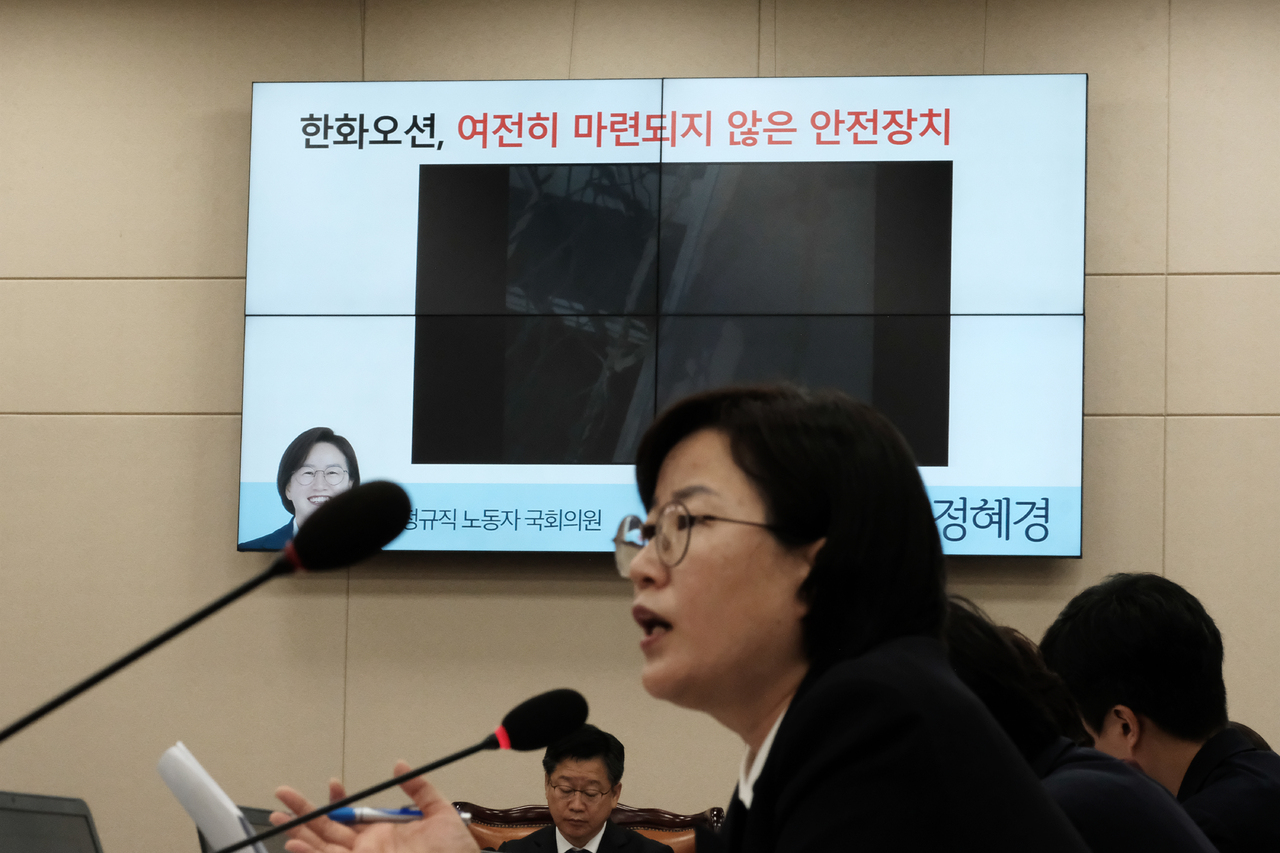 이 의원은 한화오션의 로비 의혹도 제기했다. 그는 “최근 통영지청 산재예방과 근로감독관 출신 인사가 한화오션 노동부 대응 자문위원으로 영입된 사실을 아느냐”고 물었다. 김준휘 청장과 김선재 지청장은 “잘 모르겠다”고 답했다. 이 의원은 “현직 통영지청 전직 근로감독관이 사측 자문위원으로 활동한 게 확인된 만큼, 지방청에서 확인하고 오후에 답변해 달라”고 주문했다.