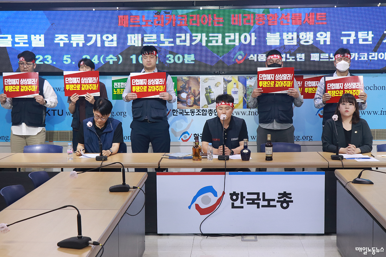 발렌타인·로얄살루트 같은 주류를 유통·판매하는 프랑스 기업인 이 회사 노사갈등은 2016년 10월로 거슬러 올라간다. 같은해 취임한 장 투불 사장은 임금교섭에서 동결안을 제시했고 페르노코리아임페리얼노조(위원장 이강호)는 교섭 결렬을 선언했다. 이듬해 7월 시작한 단체교섭에서 회사는 노조 총회와 대의원대회 보장 시간과 같은 노조활동 줄이는 안을 제시했다. 교섭을 앞두고 팀장의 노조가입을 중지시키고 단협을 해지하는 방안을 준비한 사실을 노조가 확인하고 거세게 반발하기도 했다.
