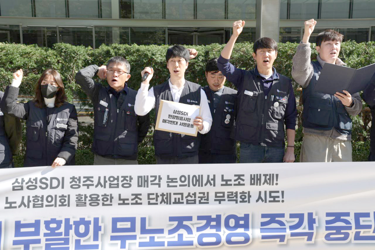 삼성SDI는 지난달 10일 전자재료사업부의 경쟁력 제고를 위해 편광필름 사업을 중국의 우시헝신광전재료유한공사에 양도하기로 했다고 공시했다. 이후 삼성SDI 청주사업장 노동자들은 일방적 매각 추진에 반발해 금속노조에 가입한 뒤 삼성SDI청주지회를 결성했다. 금속노조에 삼성SDI지회가 설립된 것은 울산과 천안에 이어 세 번째였다.
