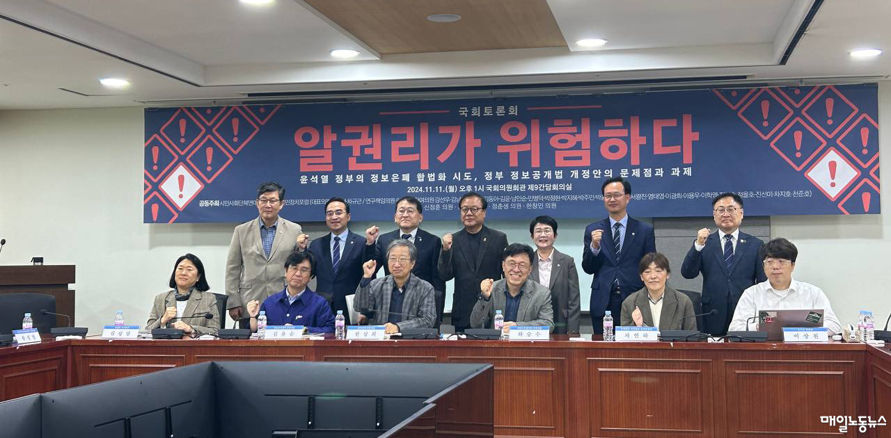 참여연대·세금도둑잡아라·투명사회를 위한 정보공개센터 등 7개 단체가 함께한 시민사회단체연대회의 알권리침해법대응 TF는 11일 오후 국회 의원회관에서 토론회를 열었다. 토론회는 국회시민정치포럼과 신정훈(더불어민주당)·윤종오(진보당)·정춘생(조국혁신당)·한창민(사회민주당) 의원이 함께 주최했다.
