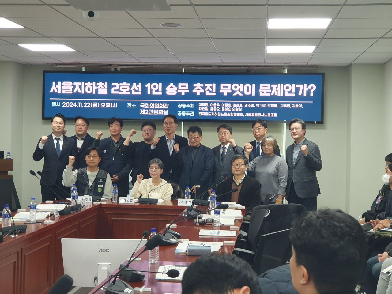 서울교통공사가 지하철 2호선에 1인 승무 제도를 도입하려 하자 반대가 거세다. 노동자와 이용객 모두 우려를 드러냈다. 현실적으로 적용이 불가능하고, 경영 효율화에도 영향이 미비하다는 이유다. 서울교통공사노조는 전국철도지하철노조궤도협의회와 함께 22일 오후 서울 영등포구 국회 의원회관에서 1인 승무 도입 관련 토론회를 열고 최근 실시한 1인 승무 관련 노동자·이용객 설문조사 결과를 발표했다. 지난 9월 7일과 9일 양일 노동자 1천422명과 이용객 1천370명이 참여했다.