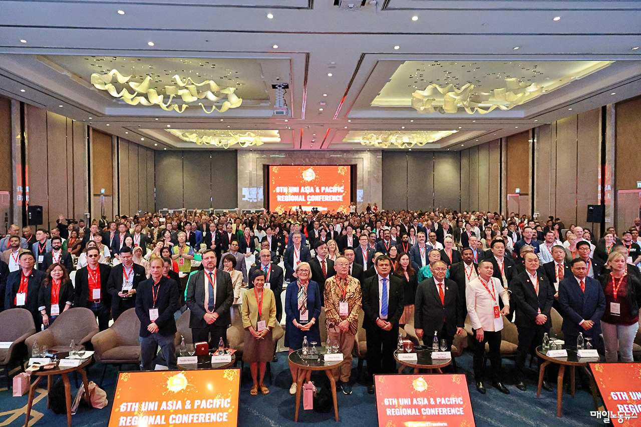 27일 금융노조에 따르면 국제사무직노조연합 아시아-태평양지역본부(UNI-APRO)는 지난 22일 22개국 노조 지도자 600명이 참가한 가운데 한국 정부의 국제노동기구 기본협약 준수 촉구 결의안을 채택했다.