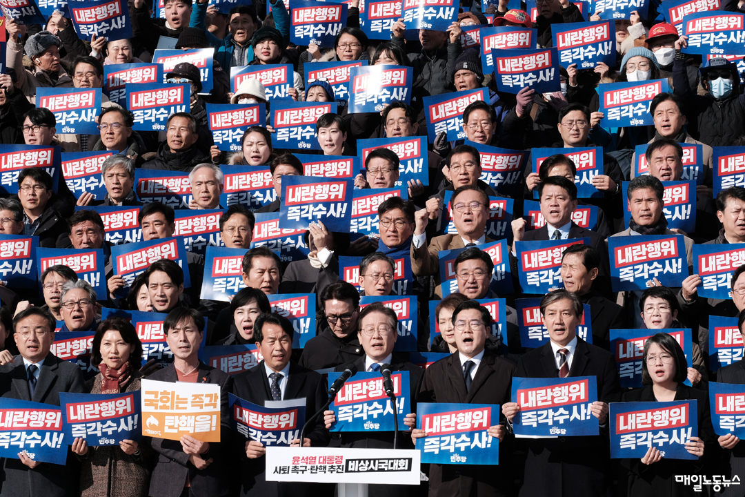민주당은 윤 대통령 탄핵 추진을 서두르는 이유 중 하나로 “또 계엄을 선포할 수 있다”는 가능성을 꼽았다. 이재명 민주당 대표는 이날 정오 국회 본청 계단에서 개최한 ‘윤석열 대통령 사퇴촉구 탄핵추진 비상시국대회’에서 “계엄은 상황이 정비되고 호전되면 또 시도할 것으로 생각한다”며 “무력을 동원한 비상계엄 조치가 실효성이 없다고 판단되는 순간에 저는 그들이 국지전이라도 벌일 것이라고 생각한다”고 경고했다.