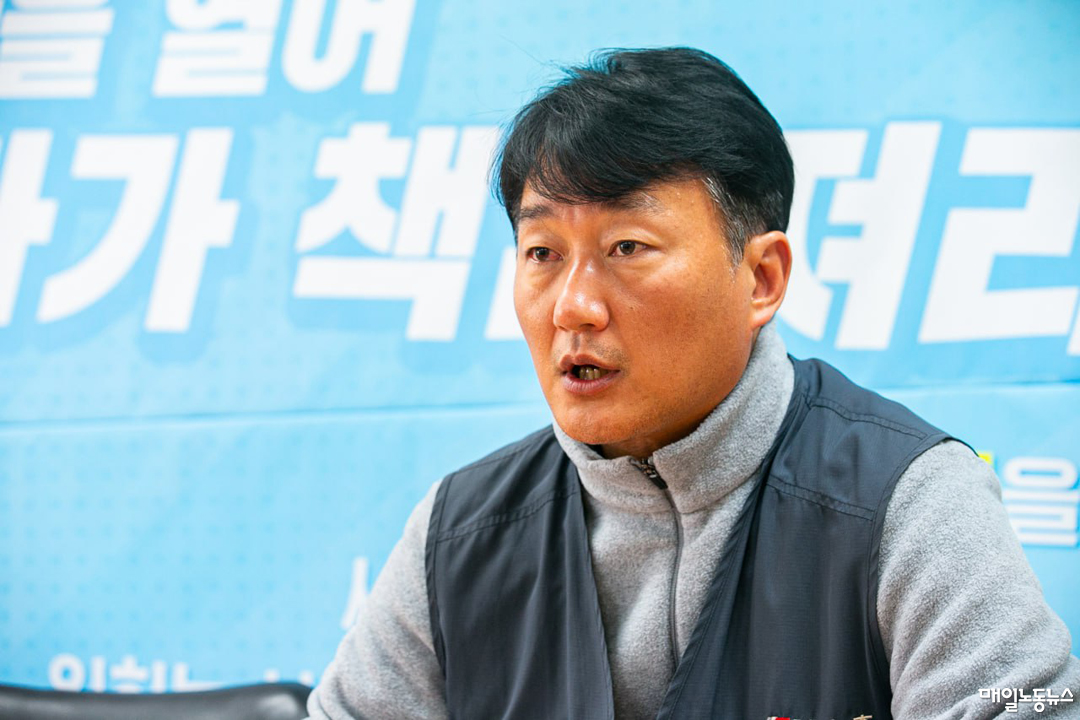 양경수(48·사진) 민주노총 위원장은 4일 오후 서울 중구 민주노총에서 <매일노동뉴스>와 만나 강조했다. 민주노총은 지난 3일 밤 윤석열 대통령이 비상계엄을 선포하자 곧바로 국회 앞 조합원 집결 방침을 하달했고, 4일 새벽에는 윤석열 정권 퇴진시까지 전 조합원이 무기한 총파업한다고 선언했다. 민주노총은 윤석열 정권 출범 뒤 정부가 노동자 권리를 박탈하고 노조를 탄압해 사회 퇴행을 이끈다며 퇴진 선봉을 자처했다.