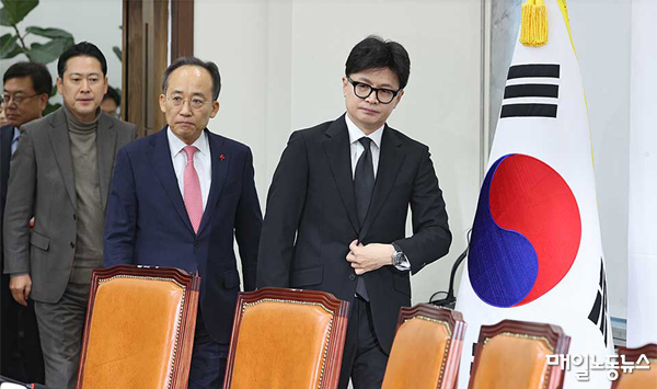 한동훈 국민의힘 대표는 5일 오전 최고위원회의에서 “준비 없는 혼란으로 인한 국민과 지지자들의 피해를 막기 위해서 (이번 탄핵안이) 통과되지 않도록 노력하겠다”고 밝혔다. 추경호 원내대표는 “대통령 탄핵 반대에 108명 의원 총의를 모아 반드시 부결시킬 것”이라고 말했다.