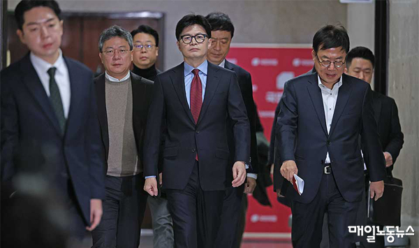 질서 있는 조기 퇴진의 내용을 두고 국민의 관심이 쏠린 가운데, 여당은 정치적 유불리를 계산하며 갈팡질팡하는 모습이다. 전날 한덕수 국무총리와 함께한 대국민 담화에서 “질서 있는 조기 퇴진의 구체적인 방안을 조속히 말씀드릴 것”이라고 약속했던 한동훈 당대표는 최고위원회가 끝나자 기자들의 질문을 받지 않고 자리를 떴다.