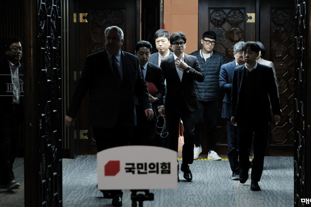 이날 여당은 ‘원조 윤핵관’으로 알려진 권성동 국민의힘 의원을 원내대표로 선출했다. 106표 중 72표를 얻은 권 원내대표는 탄핵 반대 당론을 유지하면서 다시 한 번 이른바 ‘질서 있는 퇴진’ 시나리오를 점검할 것으로 보인다. 비상총회 개최 가능성이 유력하다. 기존 ‘한·한(한 대표·한덕수 국무총리) 체제’에서 내놨던 2월·3월 하야 뒤 4월 총선 등 시나리오보다 빠른 안을 제시할 가능성도 있다.
