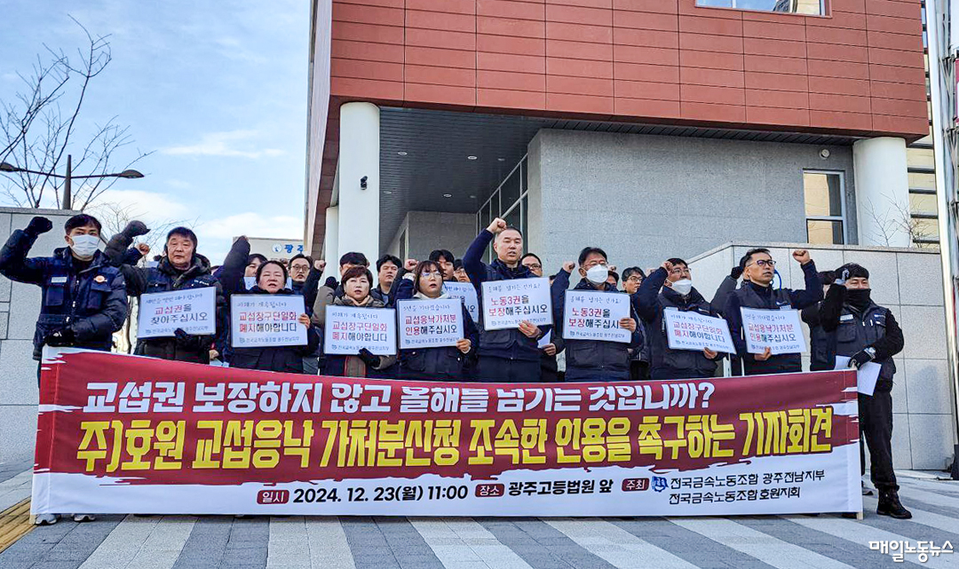 금속노조 광주전남지부 호원지회는 23일 오전 광주 동구 광주지법 앞에서 기자회견을 열고 이같이 밝혔다.