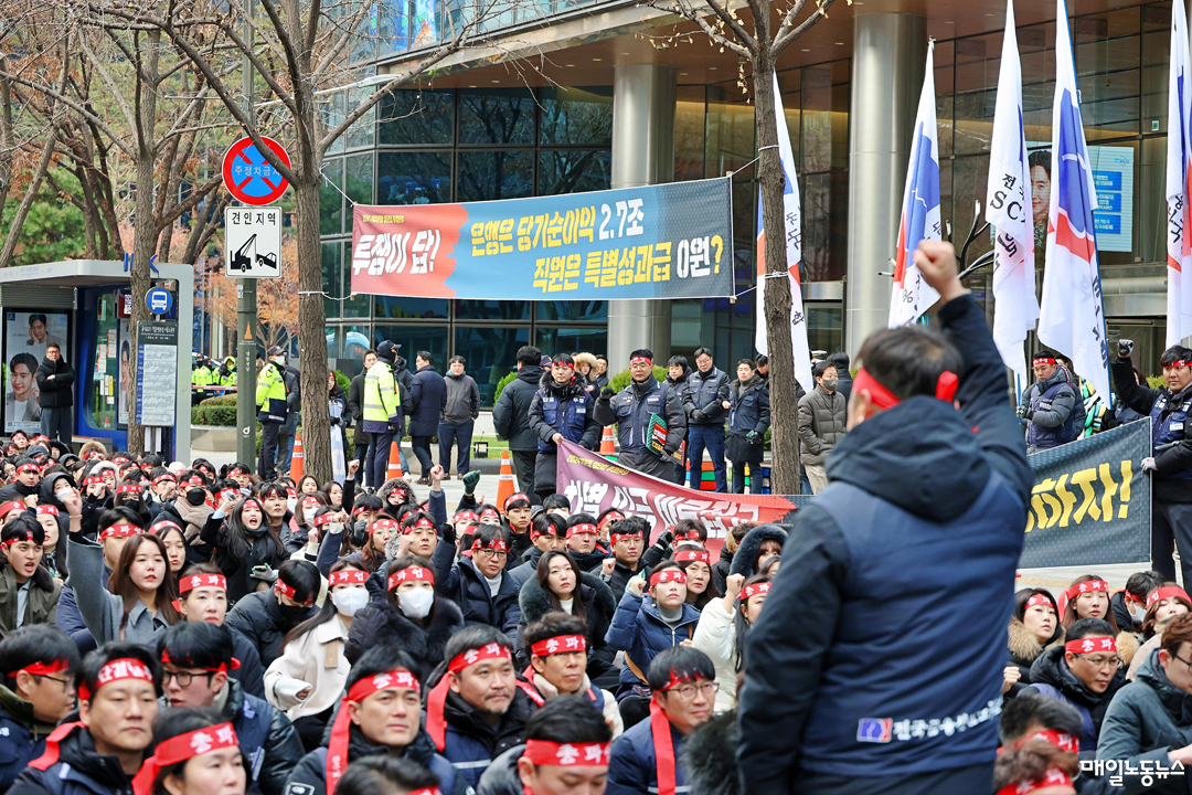 23일 기업은행지부에 따르면 지부는 27일 전 조합원이 일손을 놓는 전면파업을 한다. 올해 임금단체교섭 결렬에 따른 파업이다. 지난 12일 쟁의행위 찬반투표는 조합원 88%가 참여했고, 95% 찬성으로 가결했다. 교섭은 여느 기업의 모습과 다르지 않았다. 노조는 임금인상을 요구했고, 회사는 반대했다. 그런데 교섭 내용을 살펴보면 민간사업장과 다른 점이 눈에 띈다.
