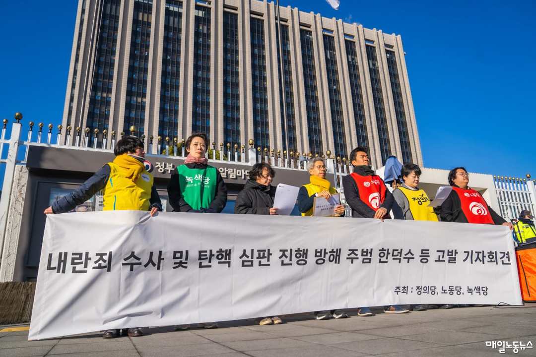 정의당·노동당·녹색당은 한덕수 대통령 권한대행을 내란죄 수사와 탄핵심판 진행을 방해한 혐의로 고위공직자범죄수사처에 고발했다.