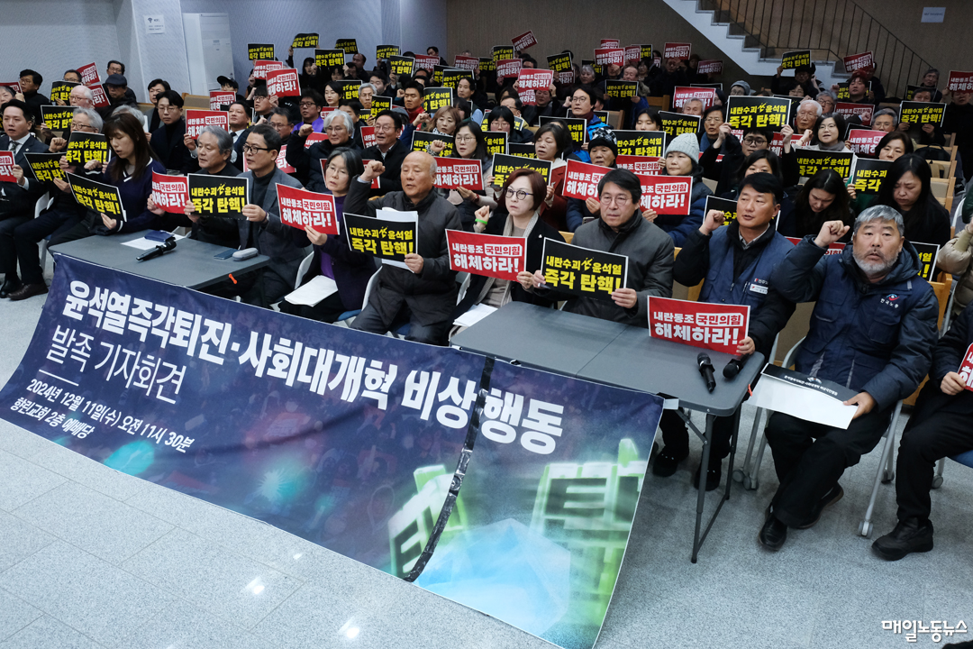 정권 2년차부터 퇴진투쟁을 벌이던 양대 노총과 1천500개 시민·사회단체는 즉시 ‘윤석열즉각퇴진·사회대개혁 비상행동’을 조직해 집회 주최와 법률대응에 나섰다. 계엄 선포 11일 만인 14일 국회는 윤 대통령에 대한 탄핵소추안을 가결했다. 응원봉을 든 청년여성을 비롯해 시민 200만명이 국회 앞에 모여 환호했다.