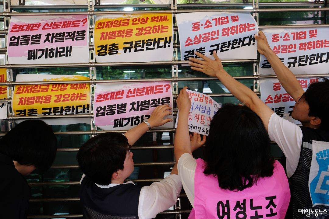 최저임금위원회는 7월12일 내년도 최저임금을 올해(9천860원)보다 1.7% 오른 시급 1만30원으로 결정했다. 인상률 1.7%는 코로나19로 인한 경기불황 탓에 역대 가장 낮은 수준으로 결정된 2021년 적용 인상률(1.5%)보다 0.2%포인트 높은 수치다. 올해 물가상승률 전망치(2.6%)에도 못 미치는 인상률이다. 재계는 최저임금이 1만원대에 들어선 것을 두고 일자리에 부정적 영향을 미칠 것이라고 우려를 표한 데 반해, 노동계는 물가상승률에도 미치지 못하는 인상으로 저임금 노동자들의 처지가 악화될 수 있다고 지적했다.