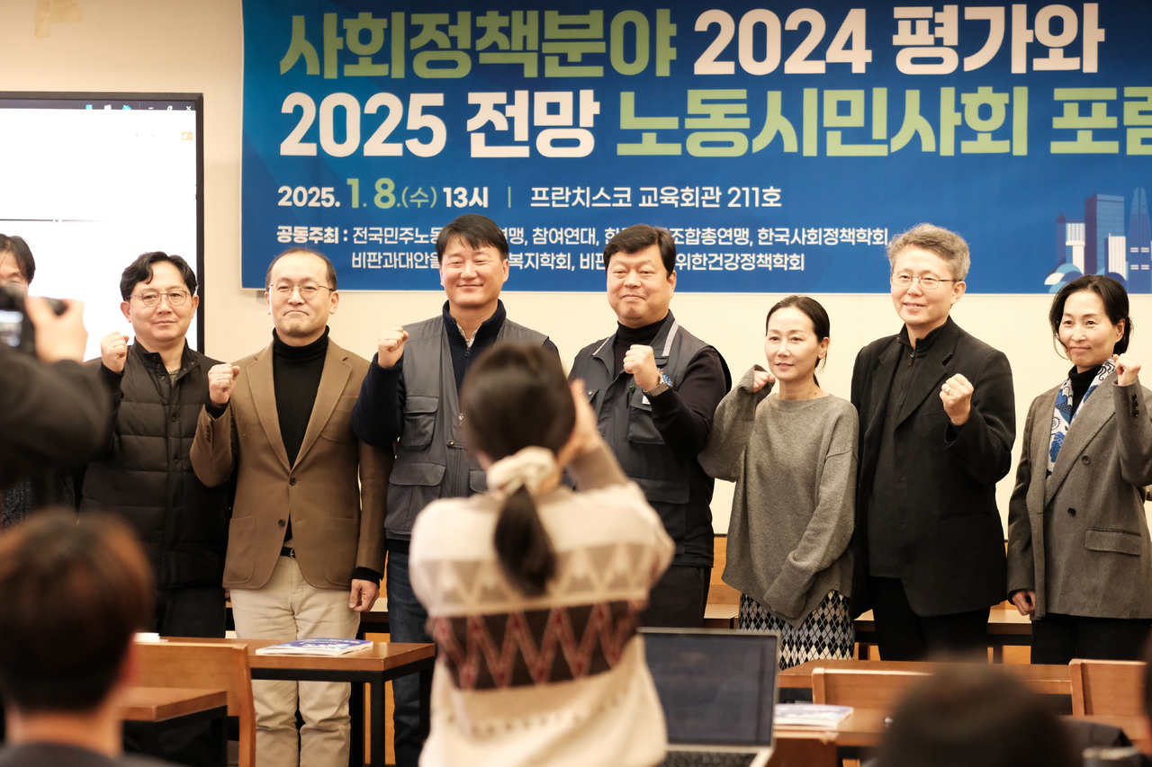 양대 노총과 참여연대, 한국사회정책학회 등 노동·시민·사회단체는 8일 오전 서울 중구 프란치스코 교육회관에서 사회정책 분야 2024 평가와 2025 전망 정책포럼을 개최했다. 소득보장·돌봄·보건의료 등 사회정책 분야에서 지난해 나타난 흐름을 진단하고 올해 개선해야 할 과제를 점검하는 자리로 마련됐다.