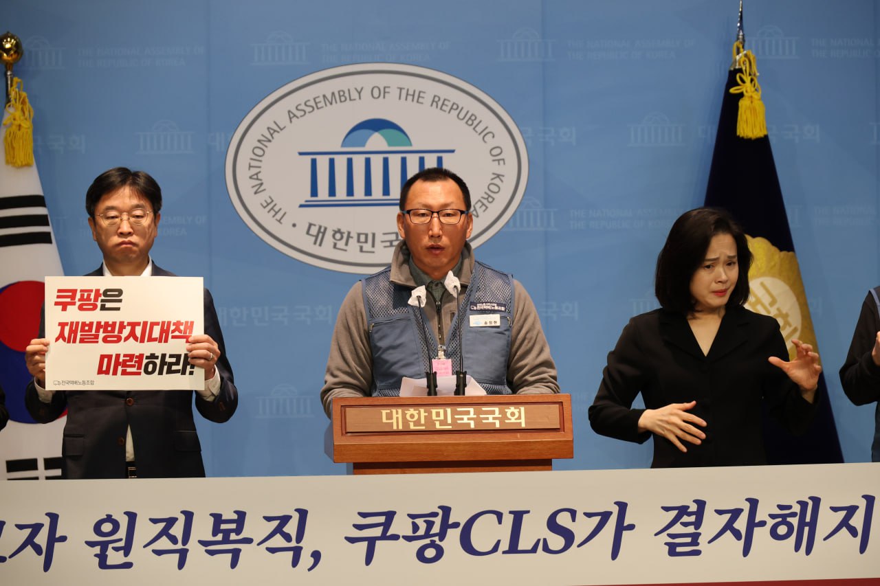 이용우 더불어민주당 의원은 기자회견에서 “쿠팡은 생계수단을 잃어버리고 노동 3권을 박탈당한 노동자 상황을 신속히 해결하라”며 “그렇지 않으면 21일 환경노동위원회 쿠팡 청문회에서 강도 높은 지적과 문제해결을 촉구하겠다”고 말했다.
