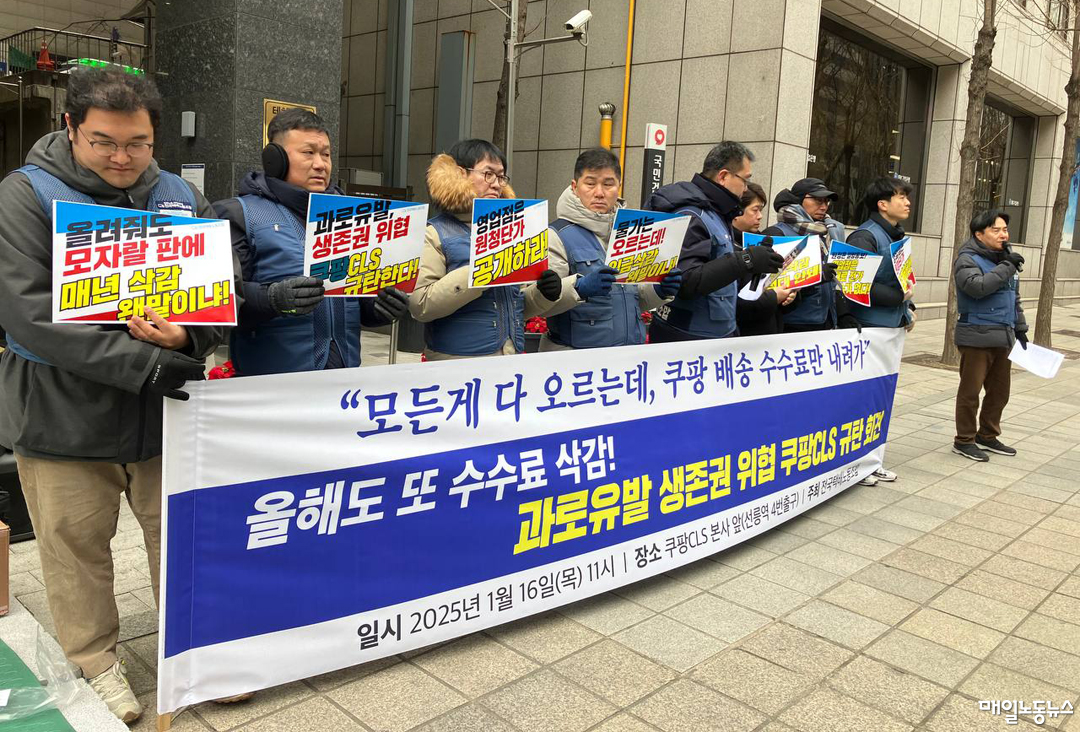 노조는 “쿠팡은 매년 수수료를 삭감하면서 물량이 늘면 수입이 보전될 것이라고 말한다”며 “그 말은 수입을 맞추려면 더 많이 배송하란 뜻이고, 또다시 택배노동자들의 과로를 유발하고 있는 것”이라고 비판했다.