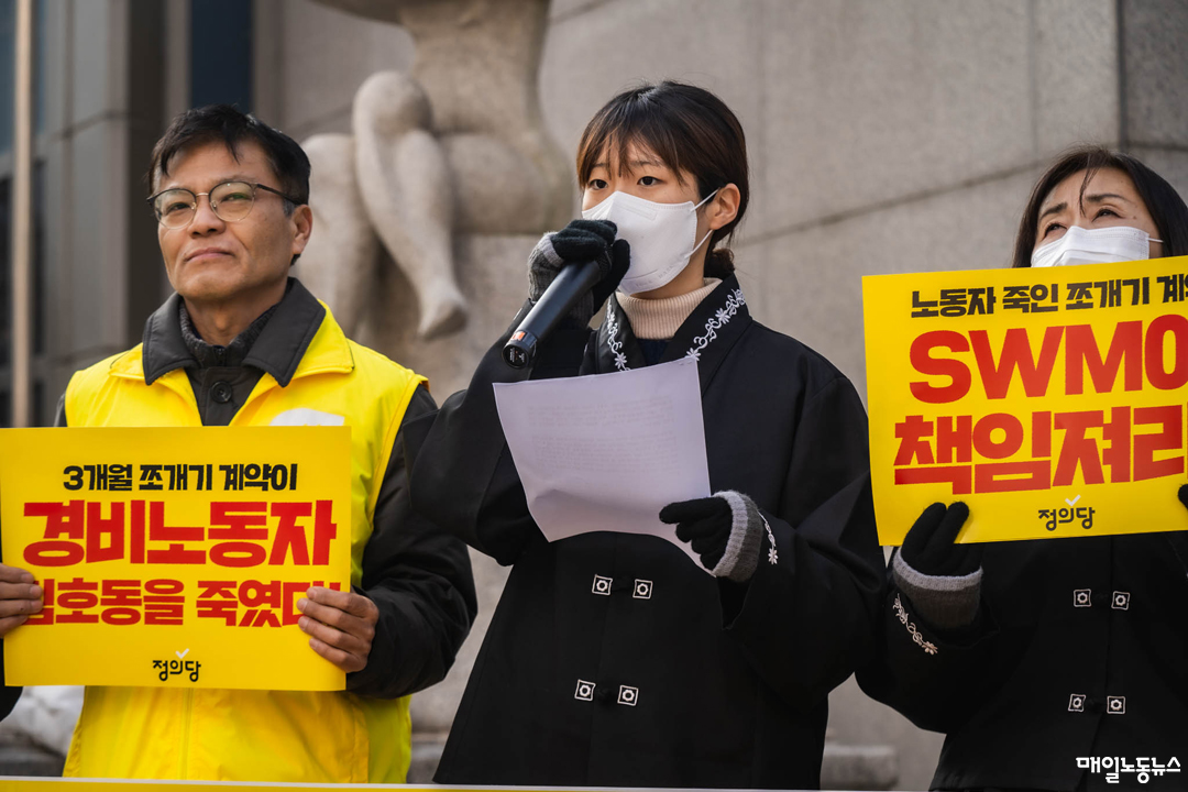 그는 관계기관에 최소한의 사회적 책임을 다하라고 촉구했다. 김씨는 “책임이 없다는 SWM의 발언은 유족의 앞날을 어둠으로 물들여 삶으로의 복귀마저 어렵게 한다”며 “SWM은 항상 이렇게 비정규직을 소모품으로 보고 인간으로도 취급하지 않는 것이냐”고 되물었다.