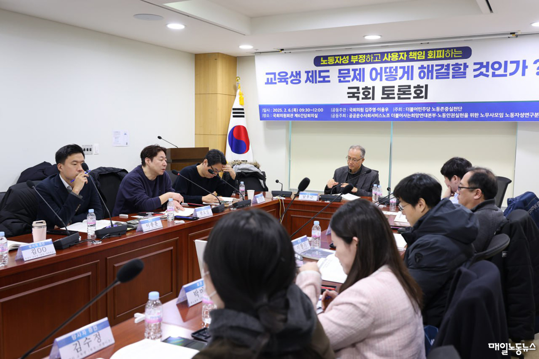 이런 입장은 6일 오전 서울 영등포구 국회에서 열린 교육생 제도 문제 해결 관련 토론회에서 나왔다. 김주영·이용우 더불어민주당 의원이 주관하고 공공운수노조 희망연대본부와 노동인권실현을 위한 노무사모임(노노모)이 공동주최했다.