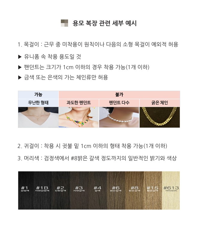 지난해 6월 시설관리는 ‘고객 응대 표준 매뉴얼’을 만들었다. 매뉴얼 ‘용모와 복장’ 항목은 여성노동자의 머리·손모양, 화장, 액세서리 착용 기준까지 세부적으로 규제하고 있다. 여성노동자는 ‘립스틱 색깔은 적당한가?’ ‘눈 화장이 너무 짙지는 않은가?’ ‘피부 처리가 깨끗하게 유지됐는가?’ 같은 항목에 따라 용모를 확인해야 한다. 귀걸이는 귓불 밑 1센티미터 이하만 허용되며 9단계별로 나눠진 머리 색깔은 최대 7단계까지 허용된다.