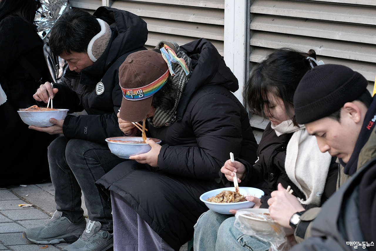 1997년 한 이동통신사 광고에 쓰인 문구다. 배달통을 든 사람이 배를 타고 바다로 나가 외친 그 한마디가 한참 유행했다. 어디든 간다고 알려진 중국집 배달원은 늘 반가운 존재였다. 일터에서 고된 일을 잠시 쉬어 갈 때, 또 이삿짐을 겨우 풀고 허기를 채울 때, 신문지 깔고 먹던 그 맛을 우리는 사랑한다. 짜장인지, 짬뽕인지가 다만 어려운 문제였다. 뻔한 주머니 사정 탓에 탕수육을 시킬지가 고민스러웠을 뿐이다. 해고된 호텔노동자가 번화가 높은 자리로 이사를 했다기에 서둘러 집들이 나온 사람들이 길바닥에 쪼르륵 앉아 짜장면과 짬뽕을 먹는다. 허기를 달래고 한기를 다스린다. 연대의 온기를 그 앞 철제구조물 위태로운 잠자리에 전한다. 언제 어디라도 달려가지 않는 곳이 없어, 무지갯빛 단결투쟁 머리띠는 남태령 고개에서, 거제 조선소에서, 또 한화빌딩 앞 비닐 집에서, 구미 어느 공장 옥상 앞에서, 탄핵 함성 높은 광화문 곳곳에서 휘날린다. 덕분에 궁지에 몰린 사람들이 말할 기회를 얻는다. 비명은, 호소는, 또 선동은 비로소 메아리를 찾는다.