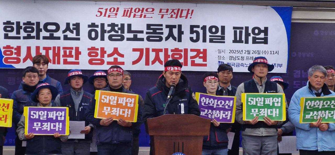 2022년 6~7월 51일간 파업해 최근 징역형 집행유예와 벌금형을 선고받은 한화오션(옛 대우조선해양) 하청노동자 22명이 항소한다.