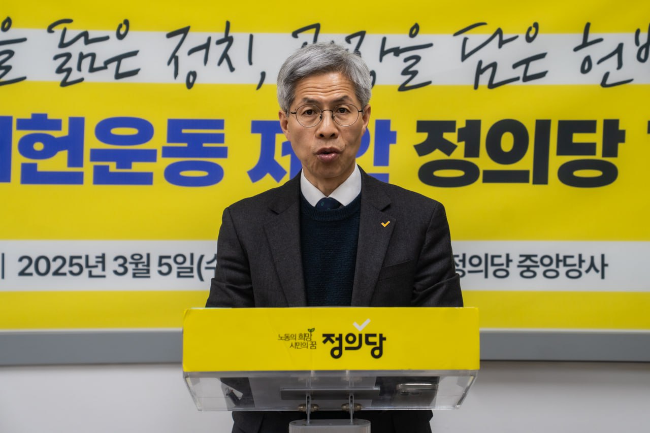 권영국 정의당 대표는 5일 오후 서울시 구로구 정의당 당사에서 기자회견을 열고 “광장 시민들이 참여해 공론을 모아내는 ‘숙의형 시민개헌위원회’를 구성하겠다”며 이같이 밝혔다.